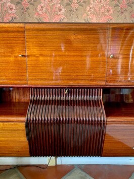 Exquisite sideboard with a built-in bar cabinet, designed by Borsani for Atelier Borsani Varedo featuring a refined blend of high-quality materials and sophisticated functionality.