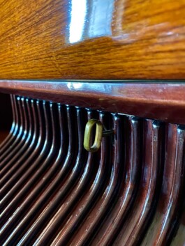 The structure is crafted from a mix of solid woods (maple and mahogany) veneered in luxurious rosewood. The elegant brass feet and original brass keys add a touch of refinement.