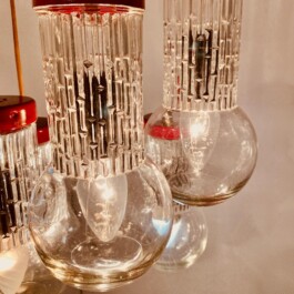 Vintage Red Chandelier, Cut Glass, Italy, 1950s