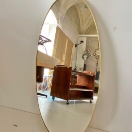 Vintage Oval Brass Mirror manufactured in Italy in the 1950s, exudes timeless elegance and a sophisticated charm reminiscent of the style of the great Gio Ponti.