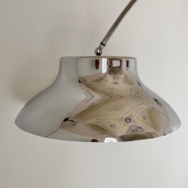 Sculptural design and refined features. The flexible and adjustable pole allows the lamp to extend forward and backward, with a height range from 185 cm to 228 cm for customizable lighting.