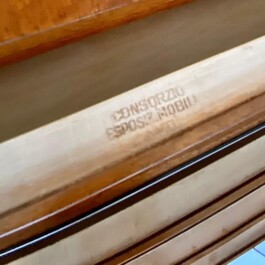 The Consorzio Mobili Cantù was composed of several smaller furniture manufacturers and artisans that came together to produce innovative, high-quality pieces often collaborations between skilled iconic designers (Gio Ponti, Parisi, Bellini, etc) and their company’s talented craftsmen.
