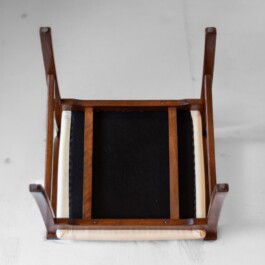The seats have been newly reupholstered in premium faux leather with fresh padding, ensuring both comfort and durability. The wooden structure has been carefully restored and refinished, preserving its original warm tone and natural grain.