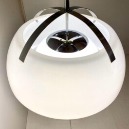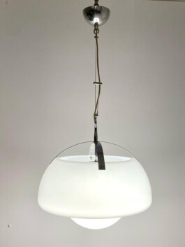This Magistretti Pendant, designed in 1962, is a true masterpiece of the mid-century Italian design school. Known for his pioneering work in industrial design, Vico Magistretti created several functional yet artistic pieces, and the Omega is a prime example of his innovative approach to lighting design.