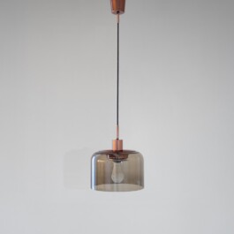 Elegant Italian pendant light manufactured in Italy in the 1970s, featuring a smoked glass shade and polished bronzed fittings.