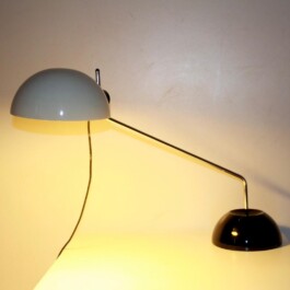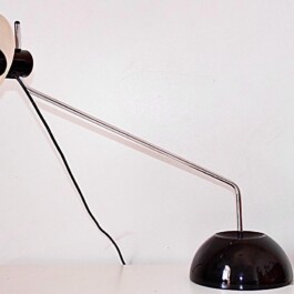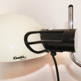 Black and white “Libellula” model with adjustable chromed iron frame, plastic shade and black iron base. Iconic Italian table lamp with typical mid-century modern industrial design. Rather rare shape within the Guzzini model collection.
