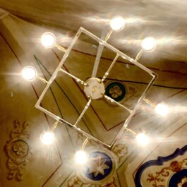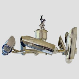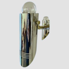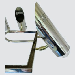 Inspired by the iconic design sensibility of the renowned Italian manufacturer Stilnovo, this unusual piece embodies elegance and sophistication. The warm, golden and silver chromed tones of its brass structure exude a refined aesthetic, making it a captivating addition to any interior space, from modern to classic settings.