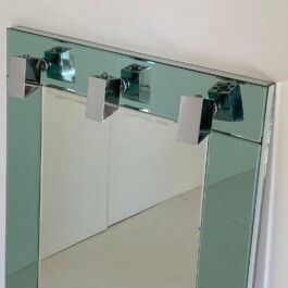 Mid-Century Vintage Aqua Glass Wall Mirror with Chrome Lights, 1970s
