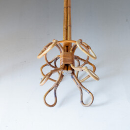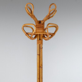 Elegant freestanding bamboo and rattan coat rack tree exemplifying mid‑century Italian taste. Attributed to Italian design master, Franco Albini, the item has been designed and manufactured in the late 1950s – early 1960s.