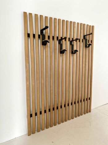 Expertly restored by our team, the teak wood has been refinished, the iron structure repainted, and the brass feet polished, ensuring they retain their timeless charm while being in very good vintage condition with only minor signs of time.