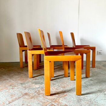 The set has been restored as follows: wood has been polished and repaired where needed. Very sturdy and confortable seat structure. Manufactured in Italy in the mid 1970s. In very good conditions with only few signs of time.