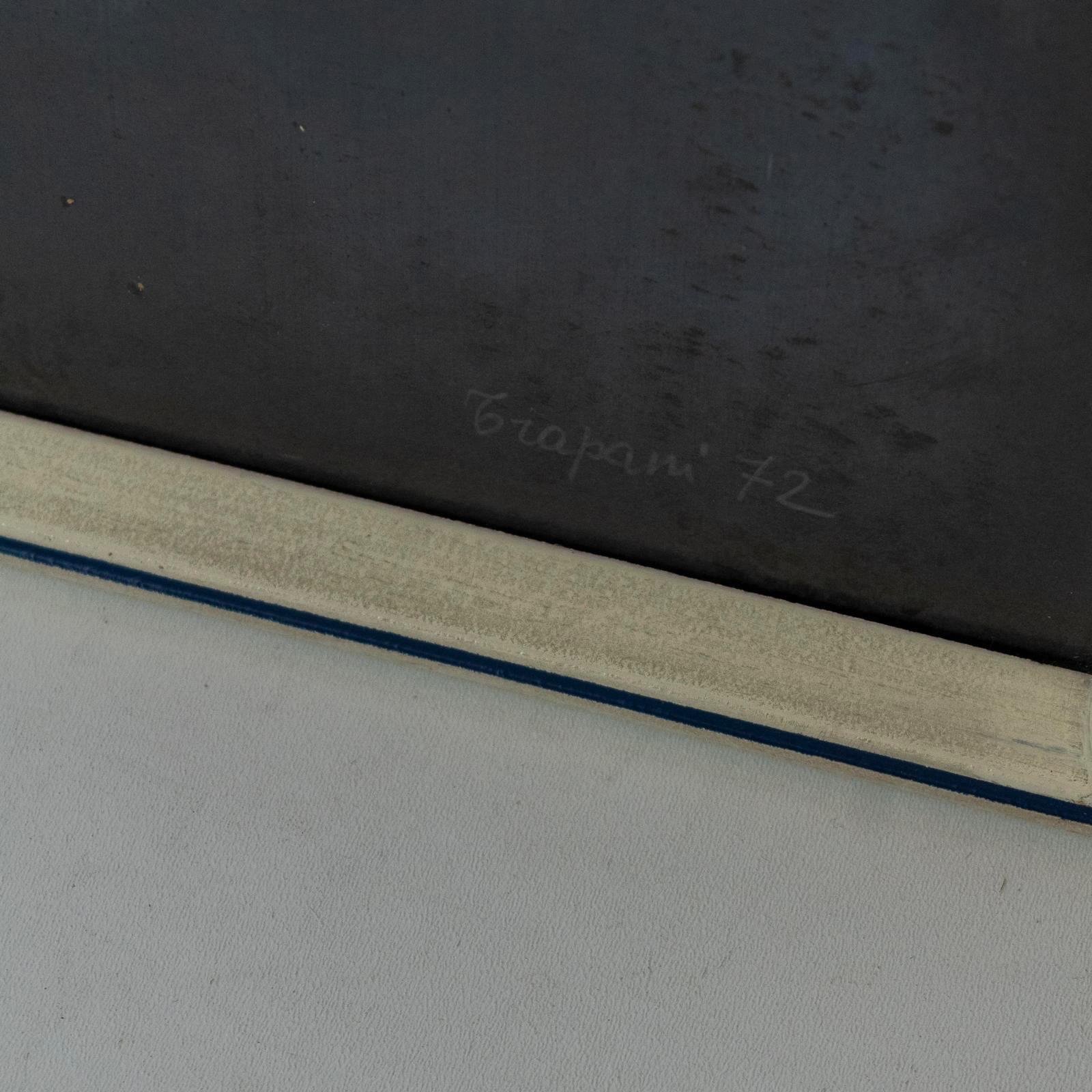 A vibrant lithographic poster by Italian artist Angela Trapani, created in the 1970s. Trapani’s work is distinguished by her exploration of abstract and geometric forms, often infused with lyrical energy and color. One of her works is part of the collection of the Fondazione Menna – Centro Studi d’Arte Contemporanea, Salerno, attesting to her recognition within the Italian contemporary art scene.