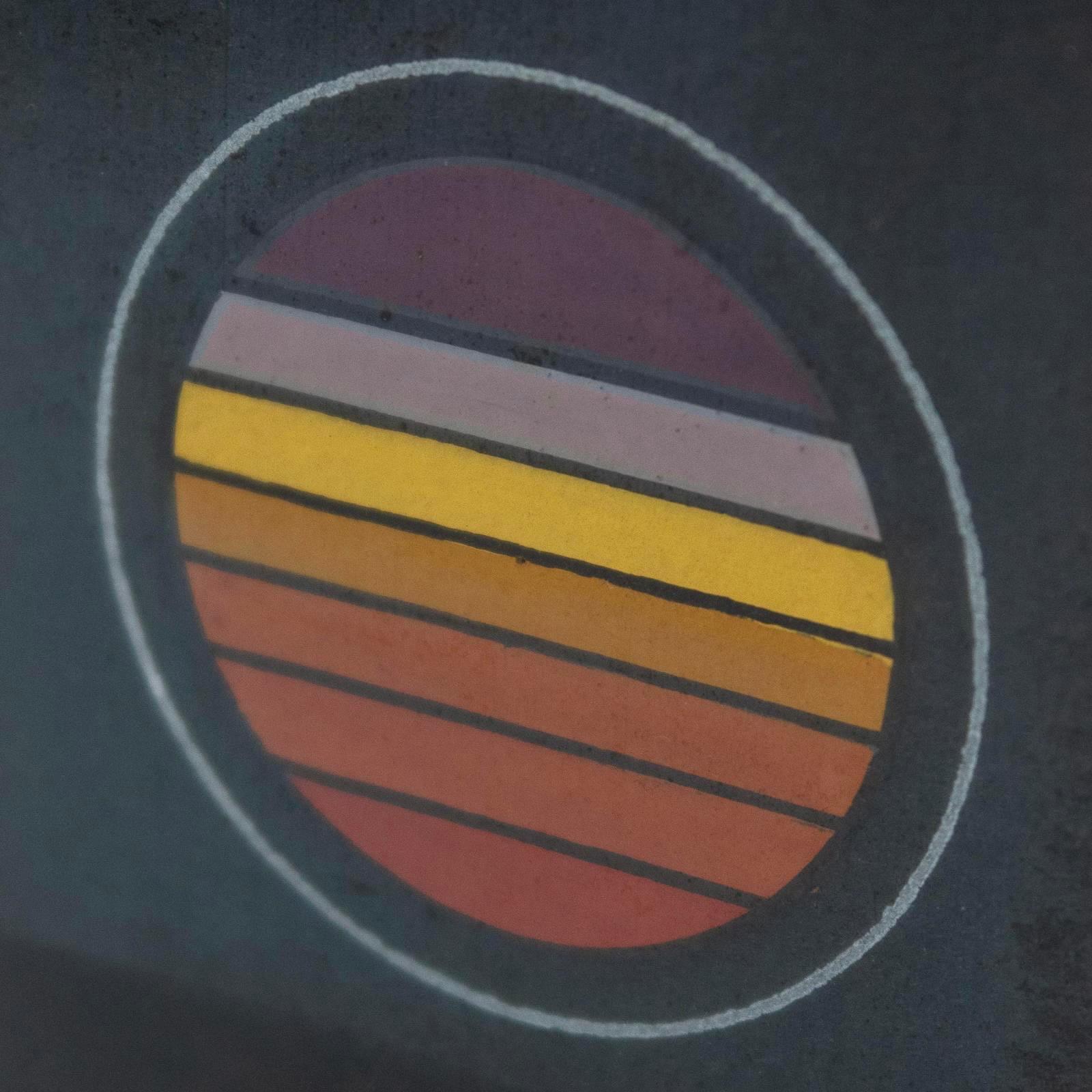 This composition presents a dynamic series of spherical, sun-like forms, evoking both cosmic imagery and natural rhythms. The balance of geometry and warmth reflects the artist’s unique interpretation of modern Italian abstraction. Printed in bold, saturated tones, the lithograph retains a strong visual impact.