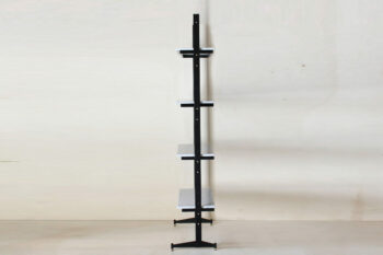 Mid Century Modern Teak Small Bookshelf in Scandinavian style- Manufactured in Itay in the 1960 ‘s. The item is made of four teak shelves framed on a black painted iron structure. Restored and refinished, the item is in very good condion with only few signs of time.
